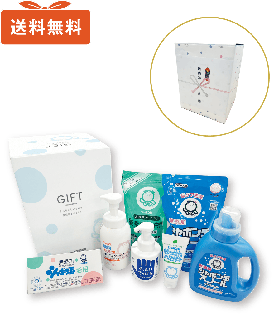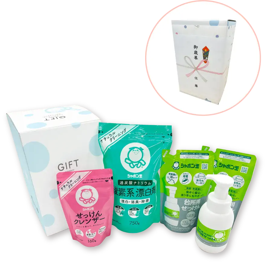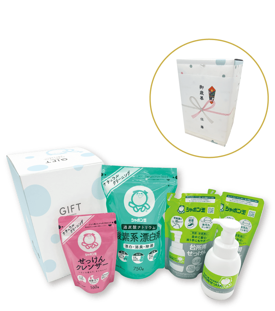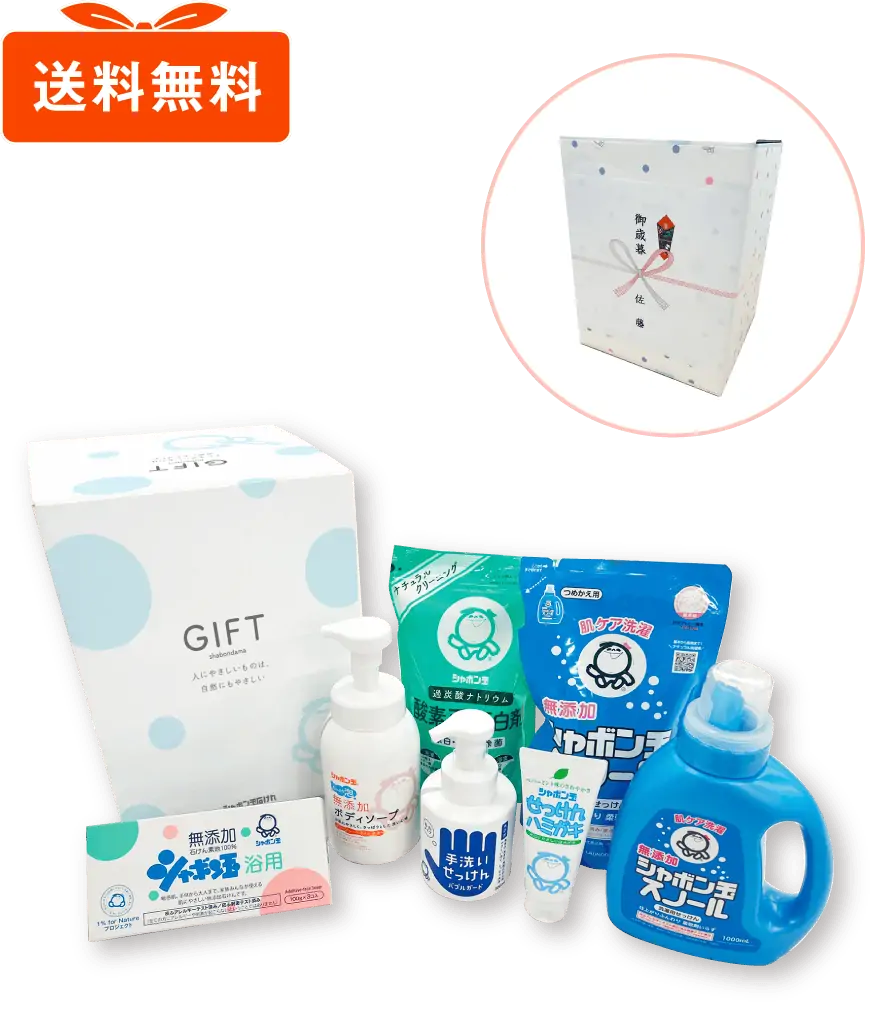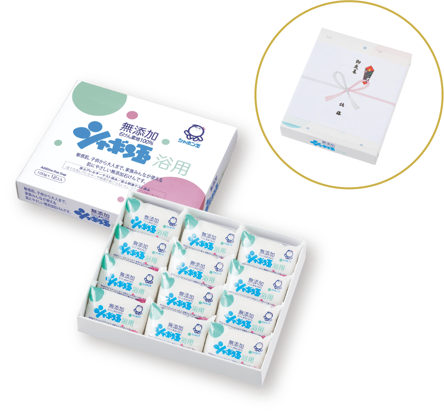 体洗いからハミガキ、洗濯までナチュラルライフをギュッと凝縮したこだわりのシャボン玉ギフト。