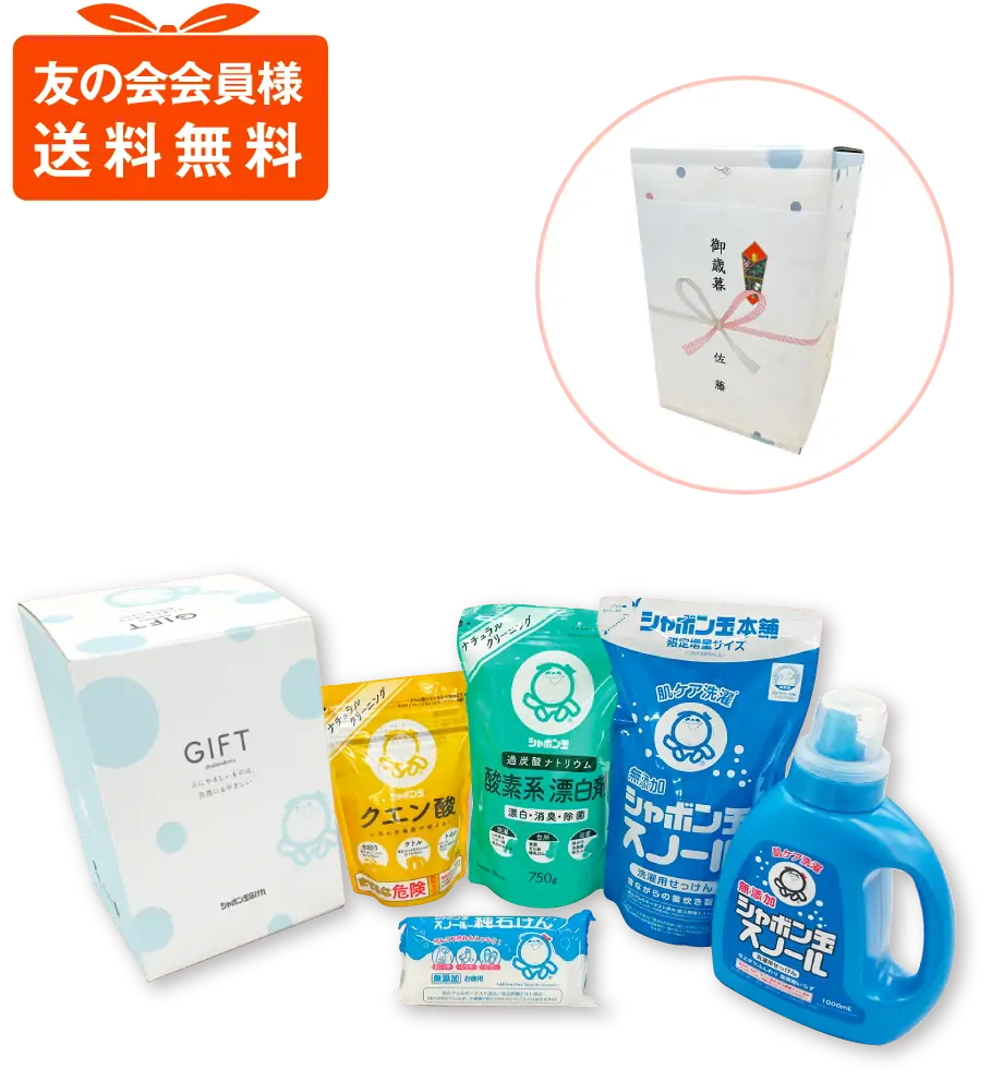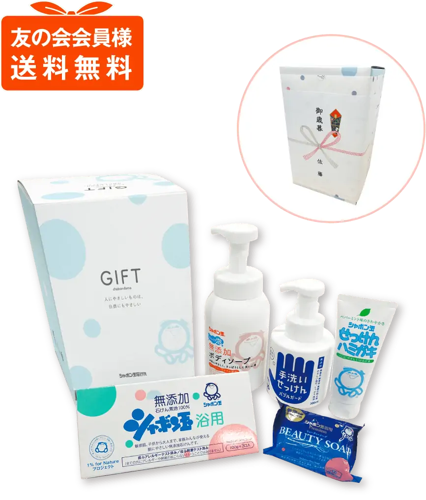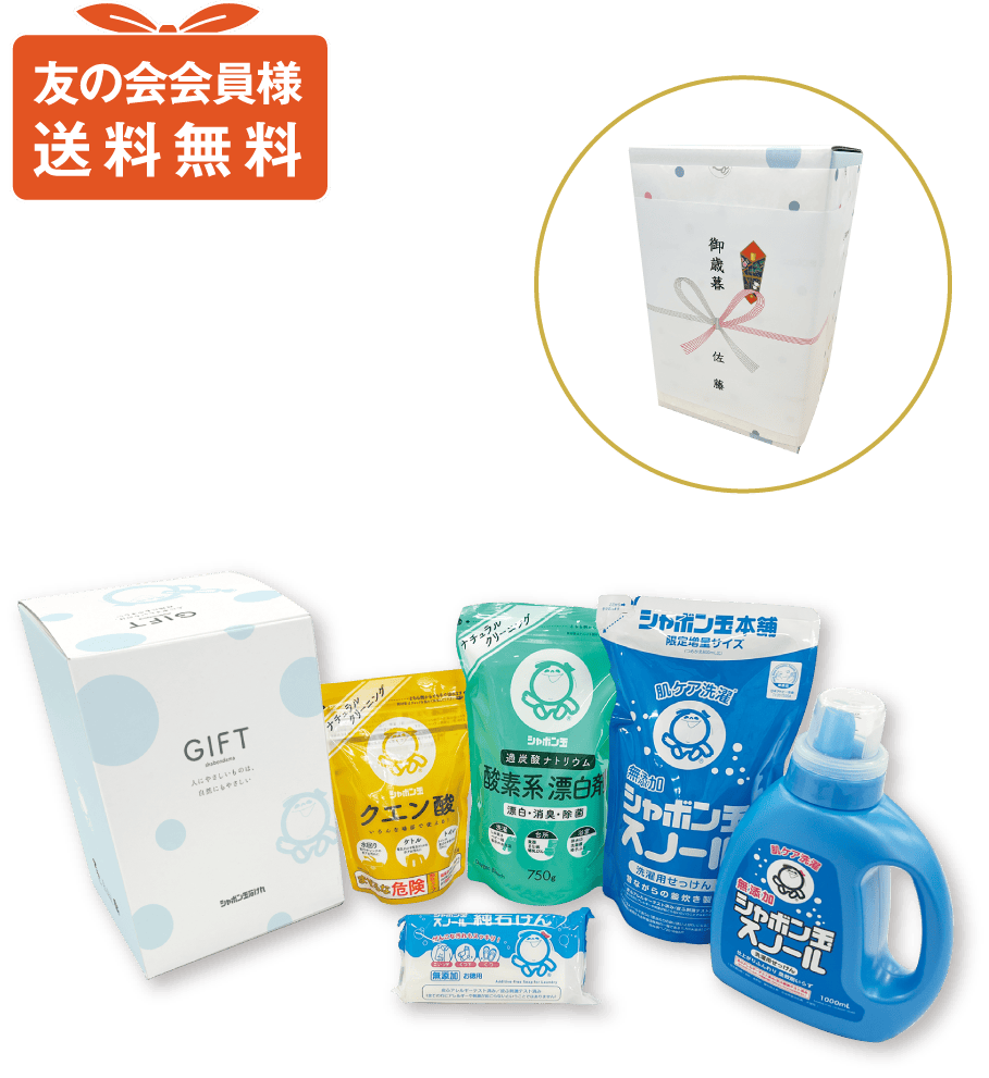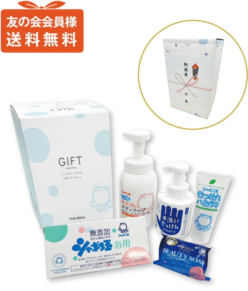 体洗いからハミガキ、洗濯までナチュラルライフをギュッと凝縮したこだわりのシャボン玉ギフト。