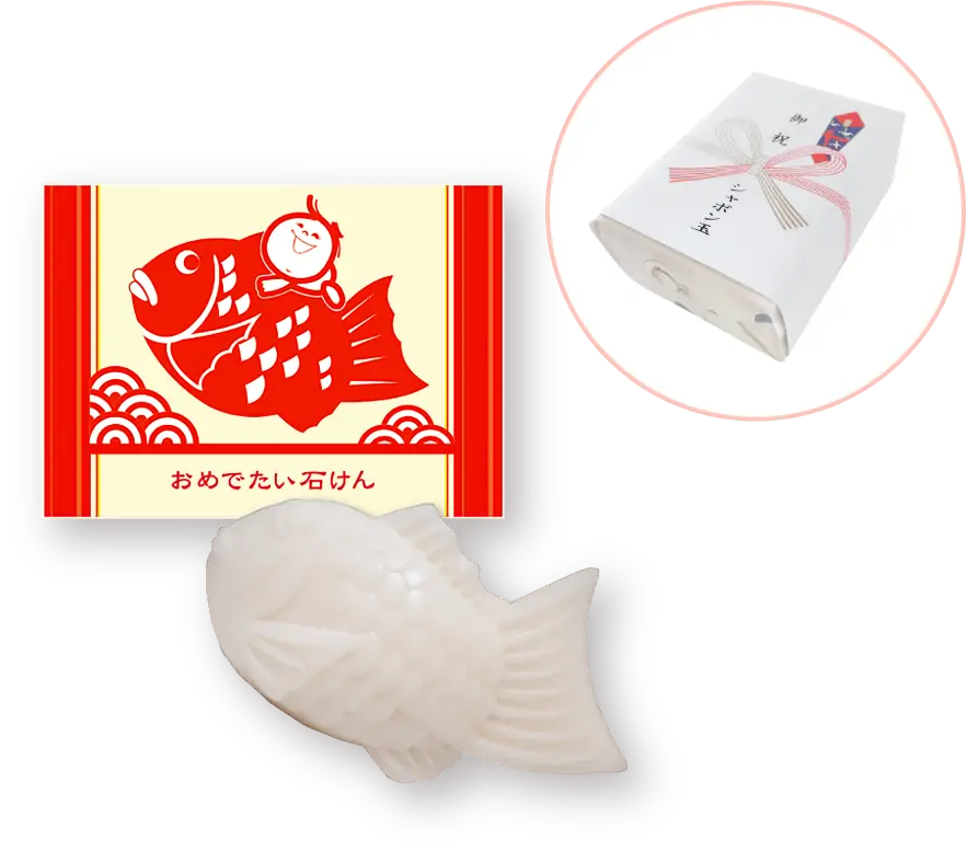 縁起の良いお魚として知られる鯛をモチーフにした石けんをつくりました。新春のご挨拶、入学祝、快気祝、結婚内祝、長寿祝などさまざまなシーンのちょっとしたプレゼントに。