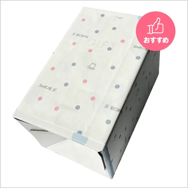 シャボンちゃんと水玉模様をあしらった包装紙です。シンプルなデザインですので、シーンを選ばずご利用いただけます。