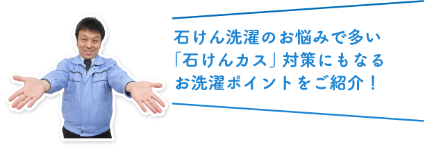 石けん洗濯の場合、洗濯物に石けんが残らないよう、すすぎは最低でも2回は行ってください。