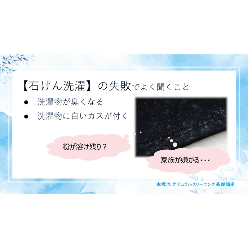 >>本橋流ナチュラルクリーニング洗濯編《入門》③「石けんカスになる理由がわかると予防できる」はこちら<<
